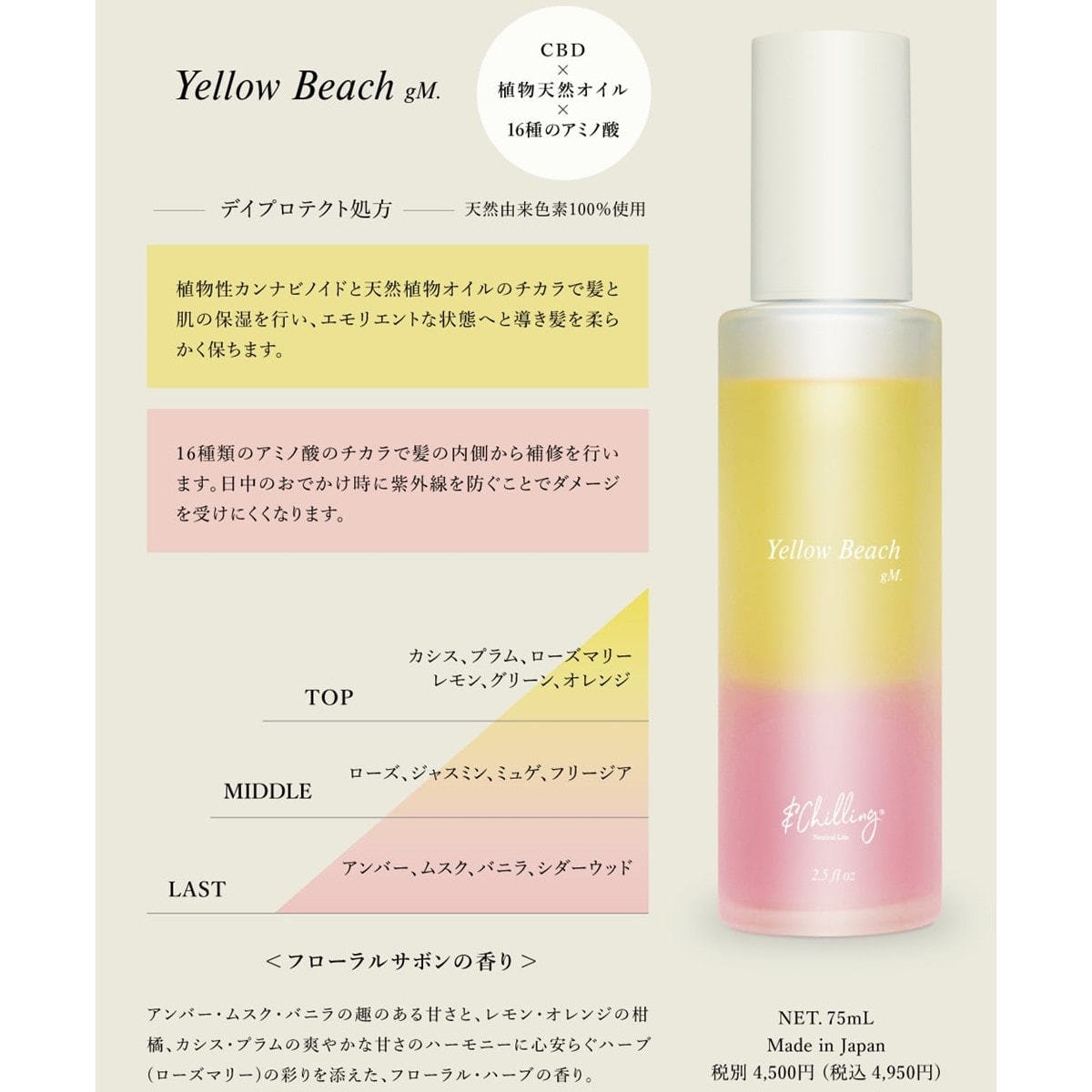 商品名:&Chilling CBD パフュームトリートメント イエロービーチgM. 75ml