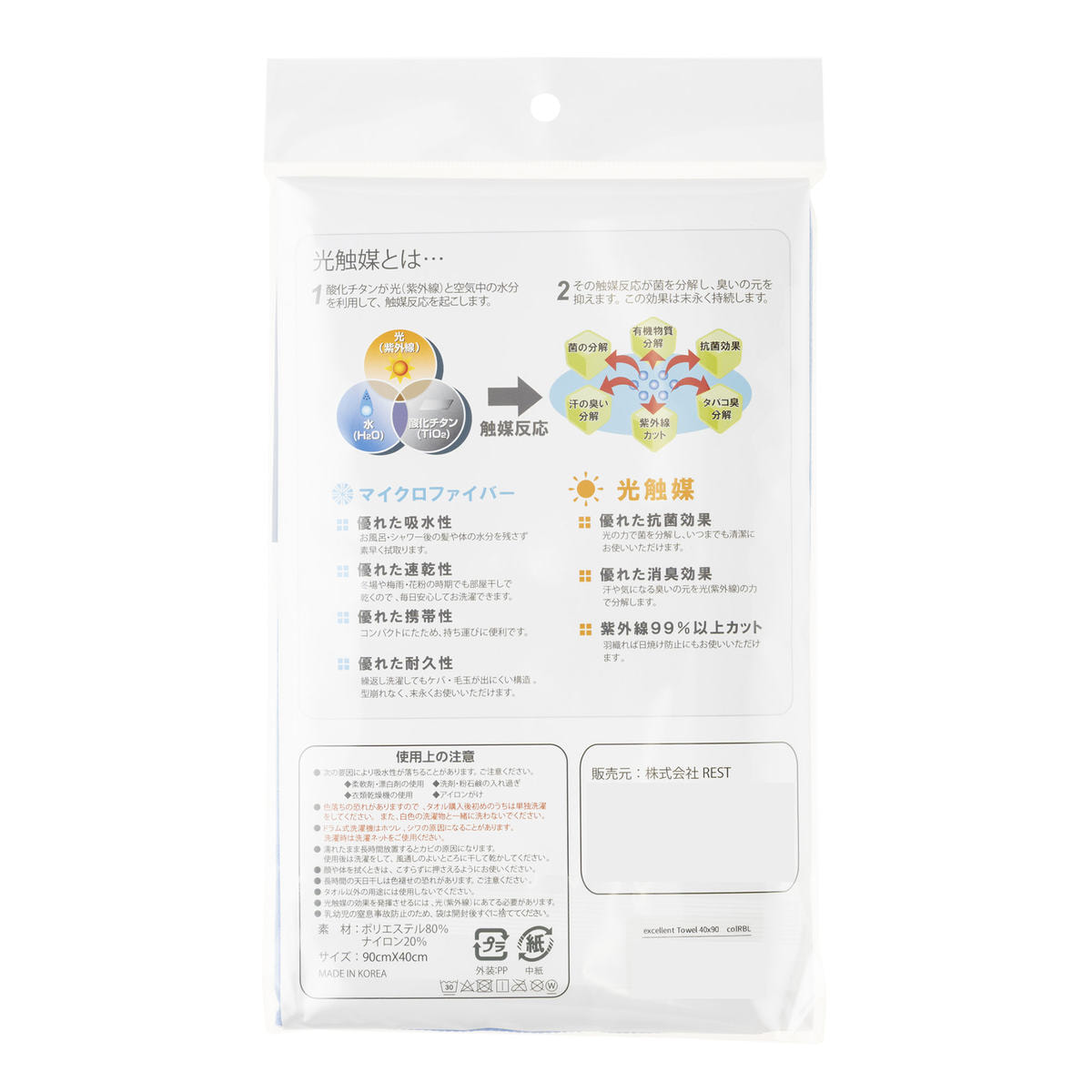 「エクセレントタオル」は、抜群の吸水性をもつマイクロファイバーに光触媒加工を施したタオルです。