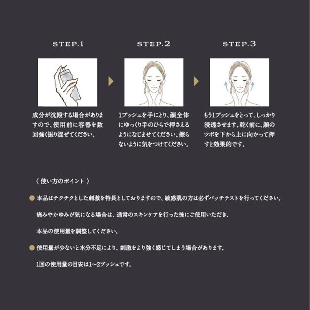 ※敏感肌でも使える成分ですが、濃度が濃いので、痛み、痒みなどが出る場合は、